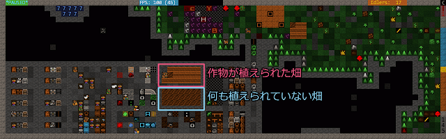 | 寝室 | :ドワーフ1人ごとに必要。ドア、ベッドの2マスが最低サイズになる。 |